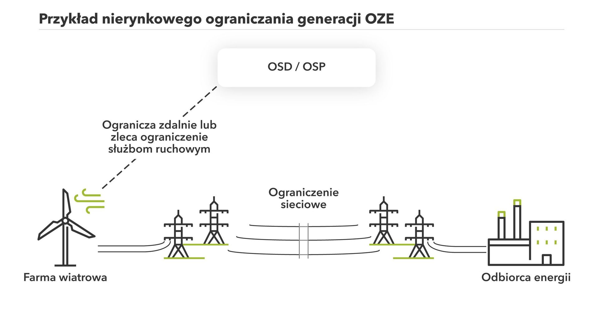 Pierwszym problemem jest nadwyżka produkcji energii elektrycznej z OZE, dużo wyższa niż zapotrzebowanie w Krajowym Systemie Elektroenergetycznym (KSE). W przypadku występowania takiej nadwyżki Polskie Sieci Elektroenergetyczne powinny, przede wszystkim, zmniejszyć wytwarzanie energii elektrycznej przez źródła konwencjonalne. Jednakże, z technicznego punktu widzenia, elektrowniami węglowymi nie można dowolnie sterować, a najstarsze bloki węglowe są w stanie ograniczyć produkcję maksymalnie do połowy wartości dla jakiej zostały zaprojektowane. Dlatego, by zapewnić wystarczający poziom ujemnej rezerwy mocy, tj. potencjału do zmniejszenia wytwarzania energii przez pracujące źródła wytwórcze, PSE decyduje się na zaniżenie generacji źródeł wiatrowych ze względu na sytuację bilansową KSE. W większości przypadków przyczyną ograniczeń nie jest zmienność generacji energii odnawialnej, ale raczej brak możliwości magazynowania energii na potrzebną skalę oraz niezdolność obecnych sieci elektroenergetycznych do transportowania nadmiaru energii elektrycznej ze źródeł odnawialnych do odbiorców.